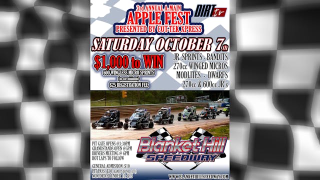 Blanket Hill Saturday, The 3rd Annual A-Main Apple Fest presented by Cot-Tek Xpress LLC 10.7.23@6:30PM