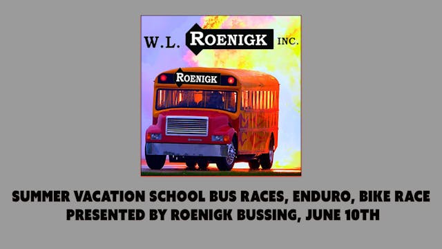 A great night of family fun and entertainment featuring the popular school bus races, kids bike races, and an exciting 100-lap Enduro race, all presented by WL Roenigk Inc.
